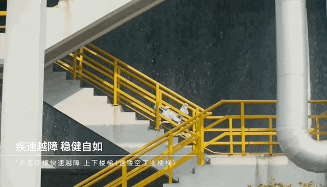 绝影X30具备强大的运动能力和感知能力,能够快速稳健地越障,并且可以准确上下镂空工业楼梯。