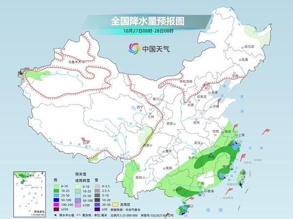 今天(10月26日),台风“潭美”仍将以西行为主,受其影响,浙江东南部、福建东北部、海南岛中部等地部分地区有暴雨或大暴雨,由于“潭美”长时间在南海海域活动,南海大风或将刮到11月初。另外,今起三天,受弱冷空气影响,北方多地将迎雨雪降温天气,多地降温可达8℃。