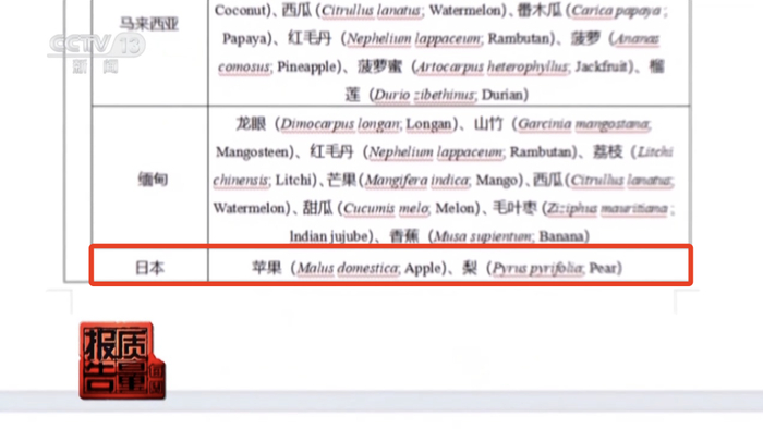 记者查阅海关总署2024年9月2日发布的《获得我国检验准入的新鲜水果种类及输出国家地区名录》发现,日本予以准入我国的水果品类目前只有苹果和梨。