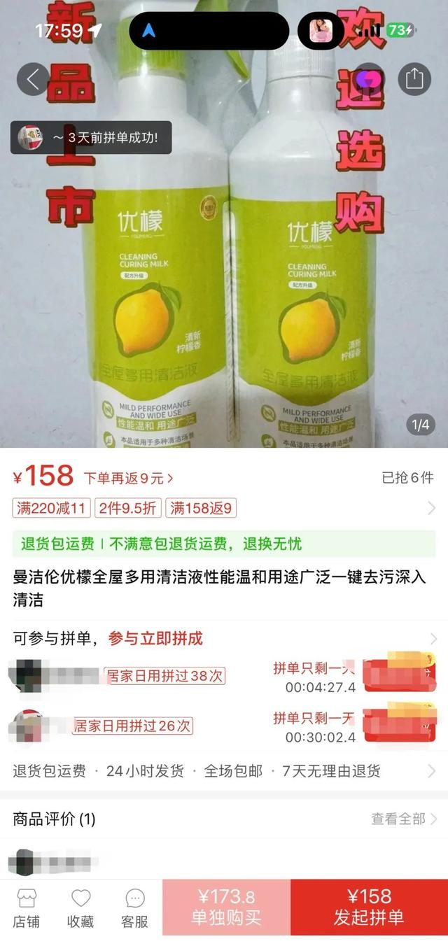 犯罪嫌疑人程某到案后交代,团伙成员以不到10元一瓶的低价购得洗洁精,但该款洗洁精并没有什么神奇的去污功效,实际使用时往往需用量极大才能达到去污效果,而扫产品二维码显示的官方原价和网店售价,则均系犯罪嫌疑人所伪造。