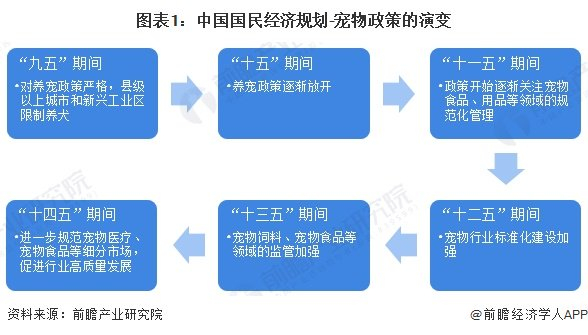 根据我国国民经济“九五”计划至“十四五”规划,我国并未直接对宠物行业发展进行指导,但在各规划期间,宠物行业政策经历了从“实施严格的养宠政策”到“促进宠物行业的高质量发展”的变化。