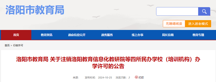 如对此有异议,请相关利益方于公告发出后10个工作日内,主动与洛阳市教育局行政审批科联系;逾期无人联系并提出异议,我局将依法办理终止、注销手续。