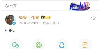 对此,杨笠工作室发文回应:租的
