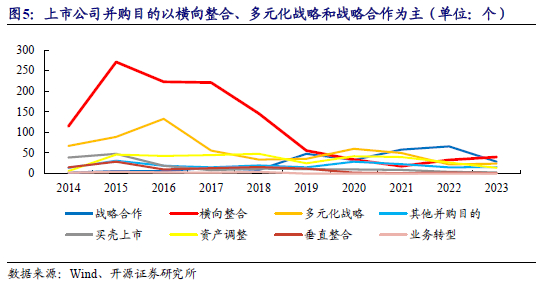 在当前经济形势下,企业之间的竞争愈发激烈,而产业链的优化和整合成为企业提升核心竞争力的关键。聚焦核心产业链,专注于与自身核心业务相匹配的领域,通过精准的并购来加强在特定产业方向上的竞争力,深化产业协同并购战略,或为北交所公司发展的有效途径。从上市公司整体的并购目的来看,A股并购重组以横向整合为主。2023年,有40个并购案例的目的为横向合并,29个为战略合作,24个为多元化战略。
