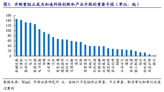 从全A股并购重组申请项目的行业角度看,2013年1月1日至2024年9月25日,机械设备、计算机、基础化工、电子、医药生物和电力设备是申请并购重组事件发生的主要行业。在“硬科技”赛道上,并购重组正成为加速科技创新和产业升级的重要手段。通过并购,企业能够通过吸纳其他公司的资产或股份来扩大自身的业务规模和市场占比,减少不必要的竞争消耗。