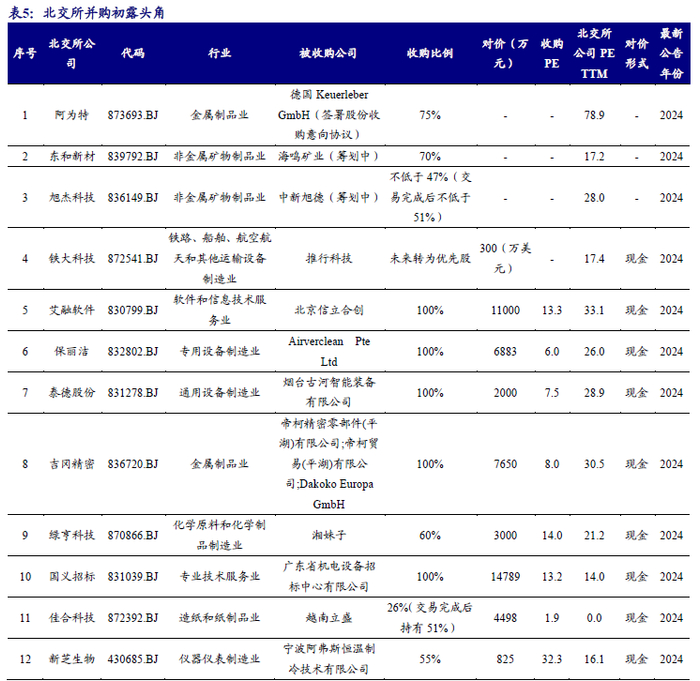 若北交所公司能在收购公司之后实现资源整合和优势互补,发挥好并购协同效应,提升整体运营效率和市场竞争力,那么并购将有望为企业带来显著的长期价值增长和投资回报。建议关注当前估值较低,且通过并购不断巩固护城河的公司。
