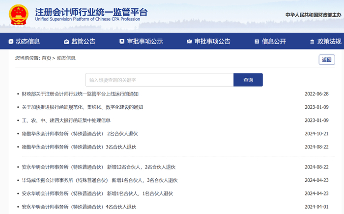 根据《会计师事务所执业许可和监督管理办法》(财政部第97号令)的有关规定,德勤华永会计师事务所(特殊普通合伙)于日前退伙3名合伙人(名单附后),并已向财政部门提交纸质变更备案申请。