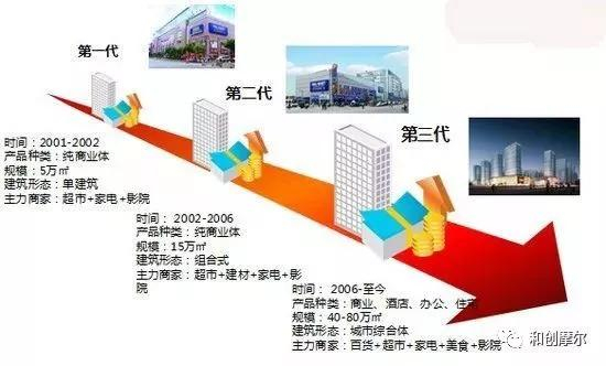 目前的万达广场形成“一主三次多辅助”的多功能复合体模式。