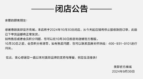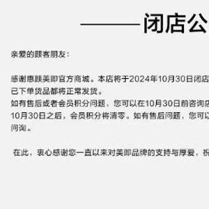 先是9月30日,美即面膜放出公告,声明线上官方商店在即日起停止接收新订单,并将于10月30日正式关闭店铺。紧接着,据相关媒体证实,美即此次闭店涵盖了美即在天猫、京东以及抖音多个主流电商平台上的全部官方旗舰店,这意味着,线上渠道再无美即。