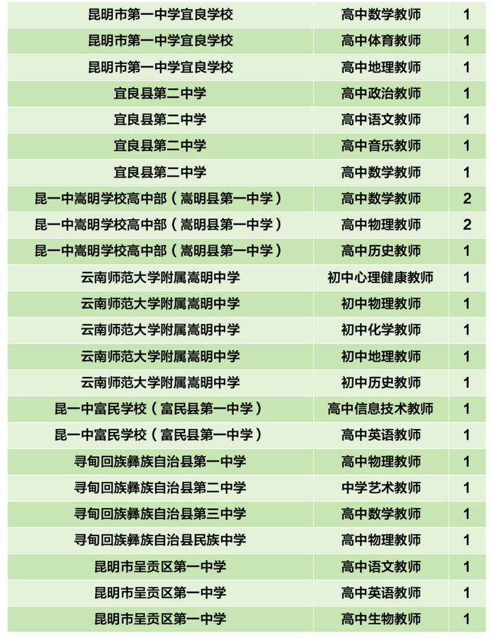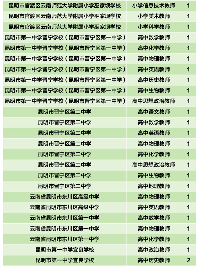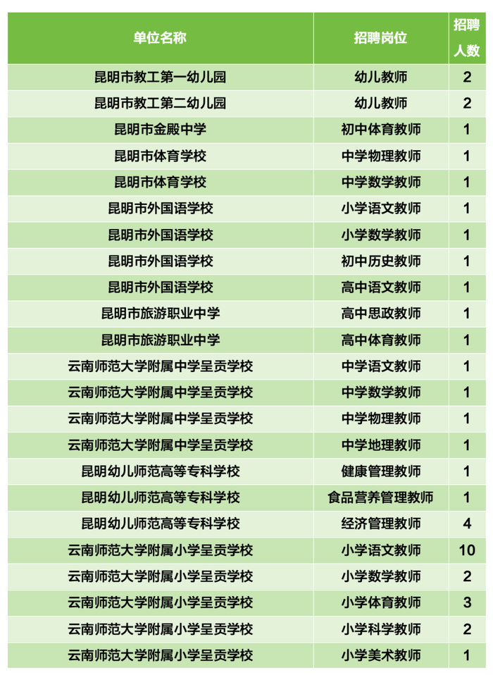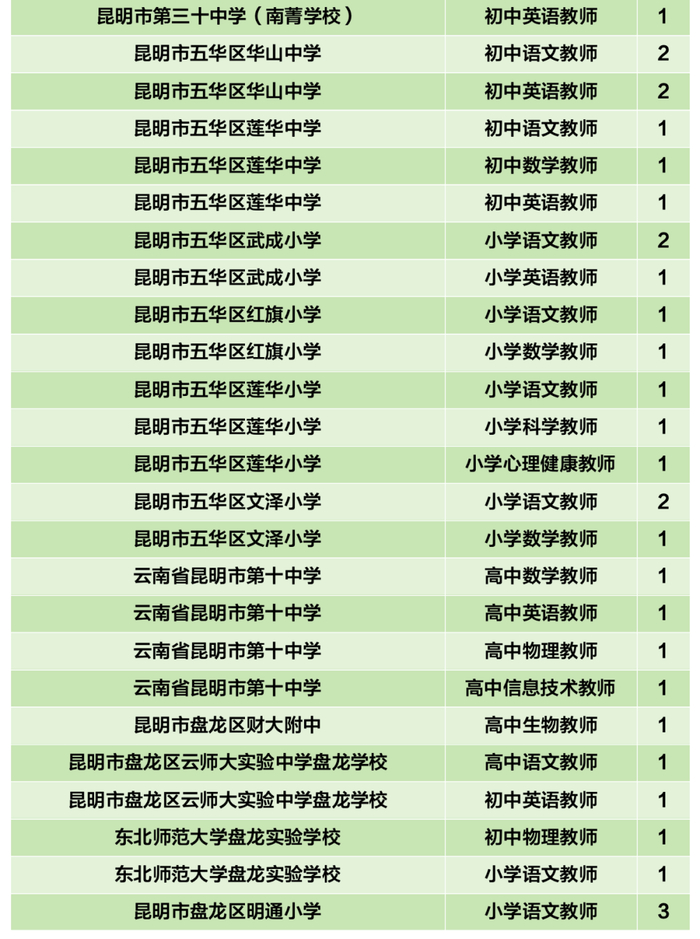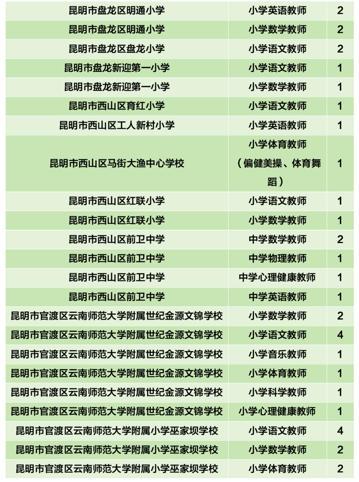 (3)面试成绩及综合成绩在昆明市教育体育局官网、昆明教育人才网公布。