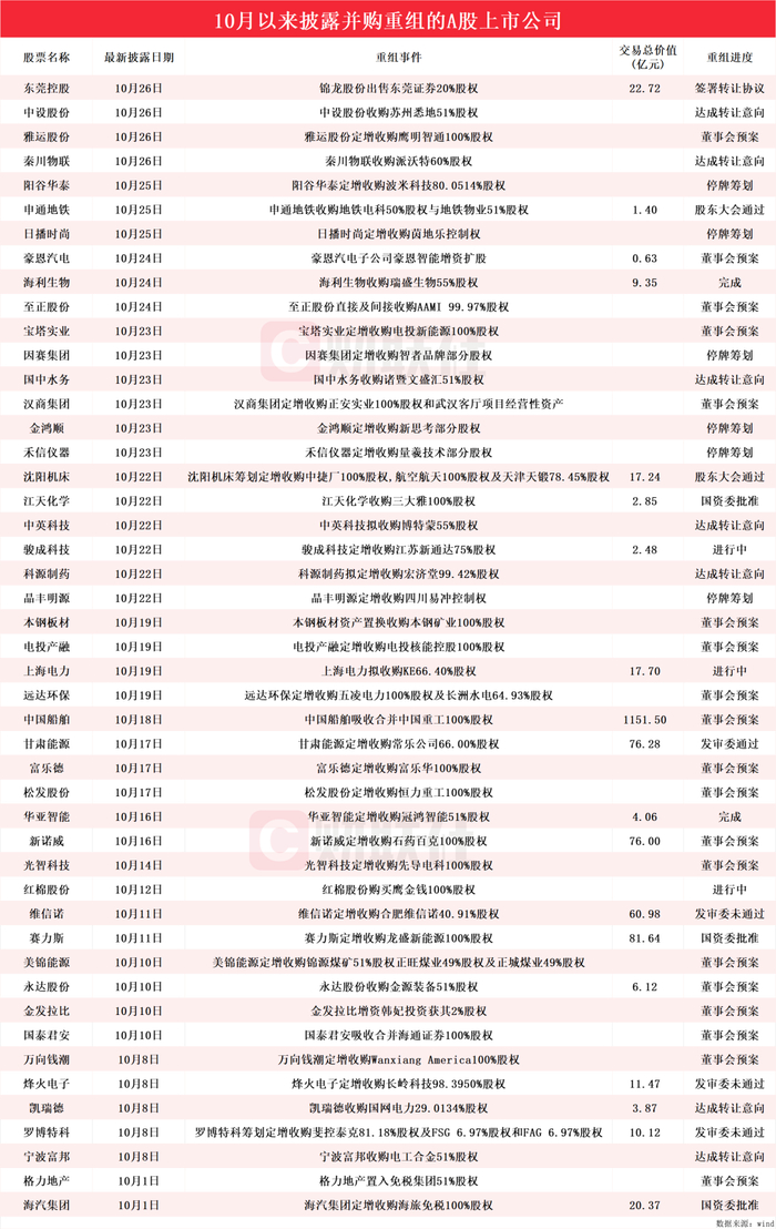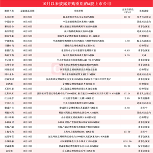 10月披露并购重组进展的A股名单一览