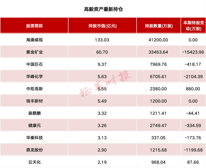 高毅资产重仓海康威视等
