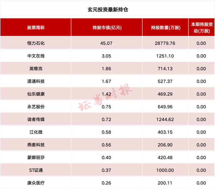 玄元投资重仓持有恒力石化