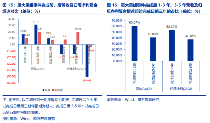 尽管完成日未呈现明显的公告日效应,但长周期来看,2014年以来的重大资产重组完成后,上市公司并购完成后业绩增速提升明显。