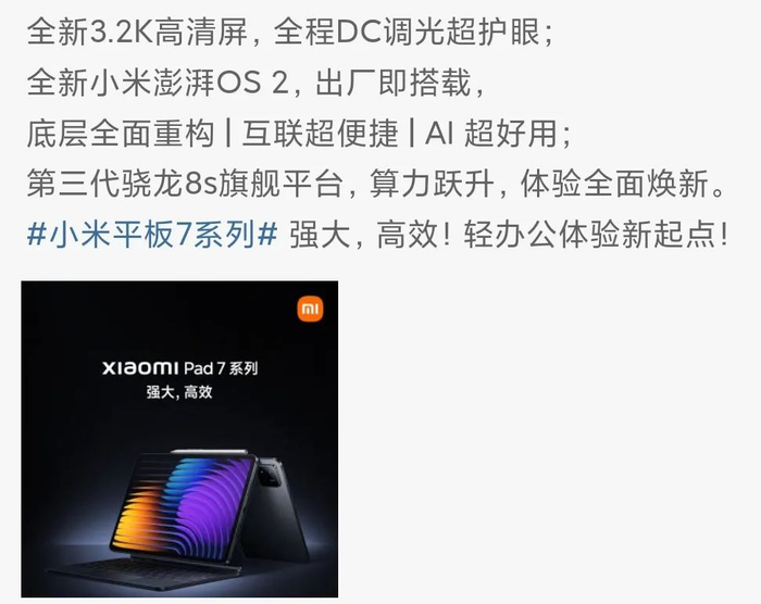 全新小米平板7系列配备3.2K显示屏、第三代骁龙8s平台。目前小米焦点触控笔(白色)已现身官网,售价499元。该款触控笔支持8192级压感、适配Xiaomi Pad 7/7 Pro 平板。