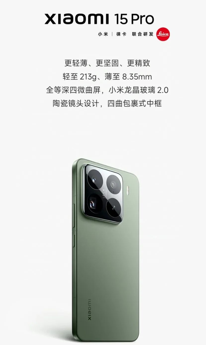 外观和其他配置上,据小米集团创始人、董事长兼CEO雷军介绍,小米15“堪称完美的小尺寸旗舰”,手感和精致度到了新高度,配备一块6.36英寸直屏,采用1.38mm超窄四等边,入手即惊艳。小米15 Pro轻至213g,薄至8.35mm,采用全等深微曲屏,覆盖小米龙晶玻璃。此外,小米15全系搭载超声波指纹,亮屏解锁快25%,息屏解锁快50%,黄金指纹位置,使用愉悦感大幅提升。