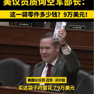 2024年4月,美国众议员迈克·沃尔兹举着一袋螺丝质询空军部长弗兰克·肯德尔网络图片