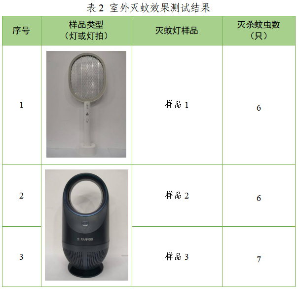 3款灭蚊灯样品确实具有灭蚊效果