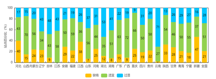 附图210月26日分省20厘米土壤墒情统计(站点百分比)