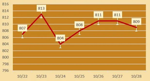 | 老凤祥 | 黄金价格 | 809元/克 | 跌2 |