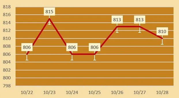 | 周六福 | 黄金价格 | 810元/克 | 跌3 |