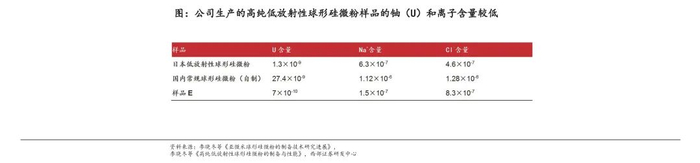 Low-α球铝研发实现突破,放射性元素管控出色。2024年10月公司发布公告,披露Low-α射线球形氧化铝研发取得突破性进展,产品检测放射性元素铀(U)和钍(Th)含量均低于5ppb级别,经过进一步对粒度级配和晶体形貌的调整,目前公司已经掌握该产品核心技术,处于实验中试向产业过渡阶段。