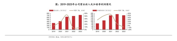 公司收入业绩整体保持稳健增长,具备充足成长动能。公司上市以来收入和业绩整体保持稳健增长,2019-2023年公司营业收入及归母净利润CAGR分别为22.6%、23.5%,其中2022-2023年公司收入及业绩增速显著放缓,主要受消费电子等终端需求疲弱影响,且公司燃料动力成本上涨对盈利能力造成一定影响。但从23Q2开始,公司收入及业绩逐步改善,受益下游需求复苏及高端品占比提升,公司从23Q3开始单季收入规模连创新高,展现充足的成长动能。