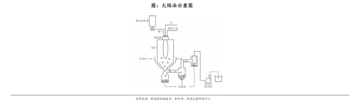 目前国内厂商主要采用火焰法为主,在纯度和粒径分布控制受限。该技术关键在于加热装置要求有稳定的温度场、易于调节温度范围以及不要对硅微粉造成二次污染。火焰法属于天然矿物粉体熔融球化,在纯度和粒径分布方面存在一定限制。