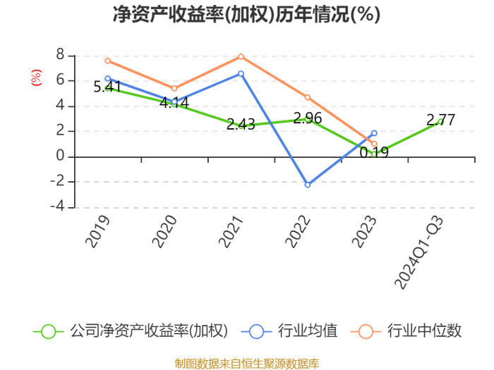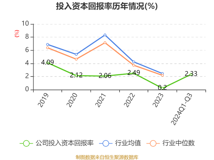 盈利能力方面, 2024年前三季度公司加权平均净资产收益率为2.77%,同比上升0.58个百分点。公司2024年前三季度投入资本回报率为2.33%,较上年同期上升0.42个百分点。