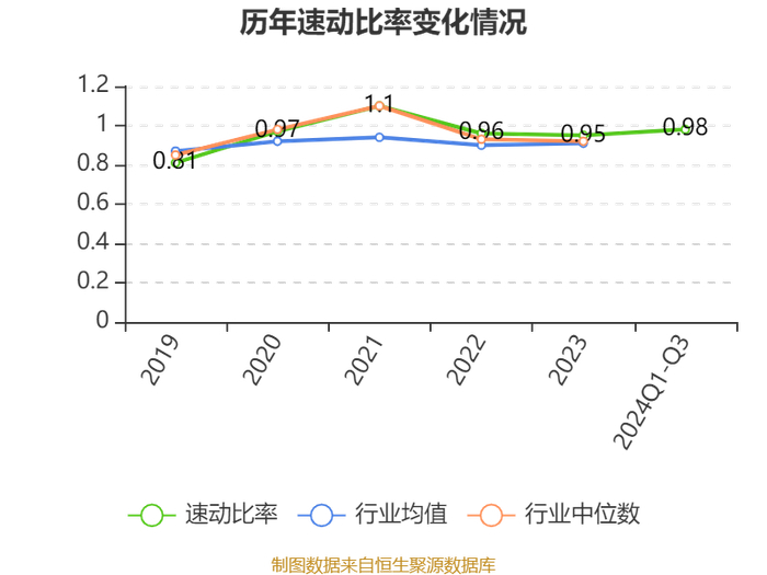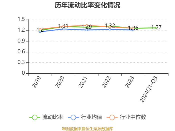 2024年前三季度,公司流动比率为1.27,速动比率为0.98。
