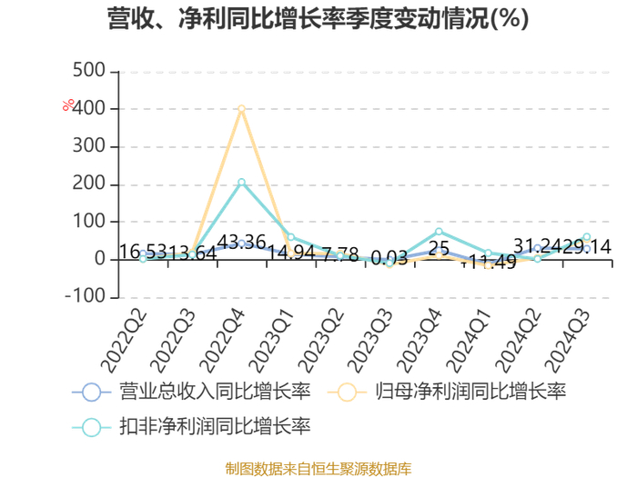 资产重大变化方面,截至2024年三季度末,公司货币资金较上年末减少36.3%,占公司总资产比重下降11.31个百分点;应收票据及应收账款较上年末增加42.62%,占公司总资产比重上升3.66个百分点;在建工程合计较上年末增加116.08%,占公司总资产比重上升2.79个百分点;存货较上年末增加21.17%,占公司总资产比重上升2.17个百分点。