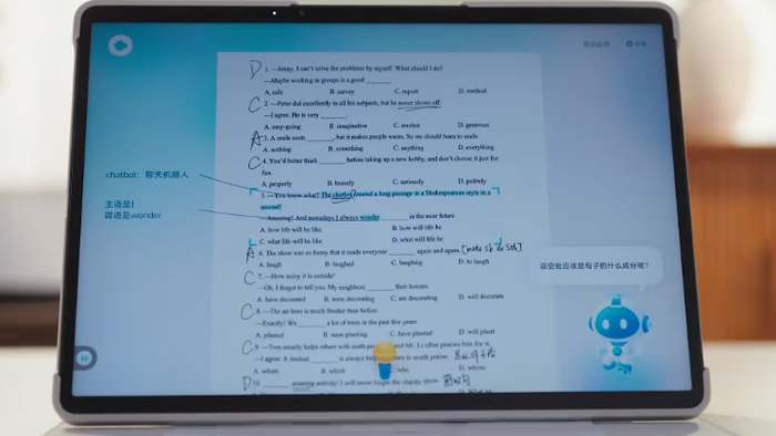 以科大讯飞学习机的AI 1对1答疑辅导功能为例,使用者可以在作答的过程中与AI对话,例如语音提问。而AI并不是直接给出答案,而是通过启发式互动讲解,引导使用者自己找出答案,真正掌握了知识。