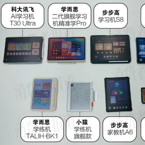 我们选购了市面上销量较高的4款学习机、2款学练机、1款家教机、1款辅导机进行比较,涉及学而思、科大讯飞、小猿、作业帮、步步高等品牌。结果显示,学习机的内容均较为齐全,默认功能也较其他产品更为全面,而学练机、家教机和辅导机不少内容均和学习机有重叠。