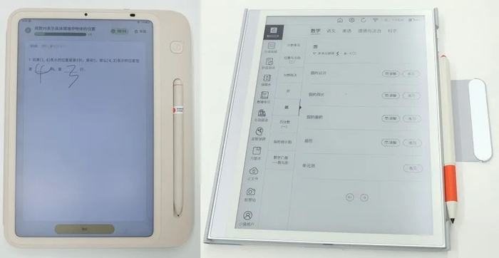 ▲学而思、小猿学练机,小猿学练机为墨水屏,较为护眼,但刷新速度较慢