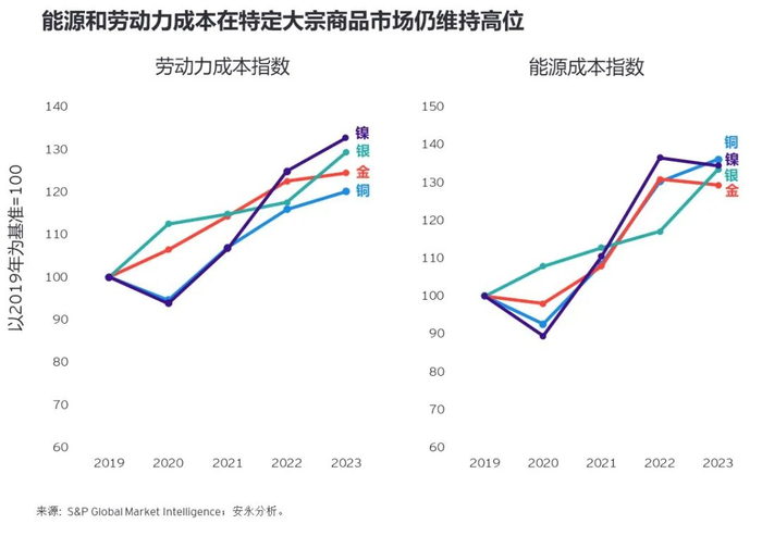矿企持续面临高昂的成本,尤其是劳动力成本和能源成本。鉴于一些岗位人员资质不足,存在技能短缺问题,因此生产力大打折扣,劳动力支出大幅增加,或将增加安全风险。