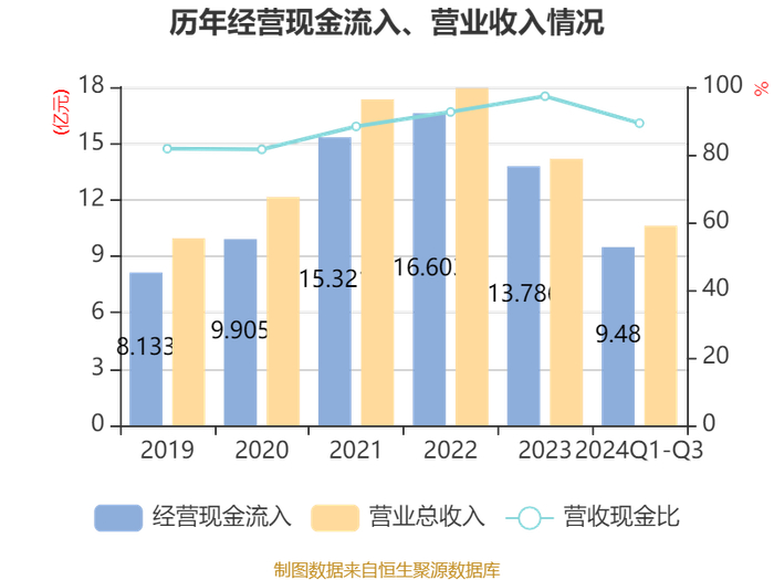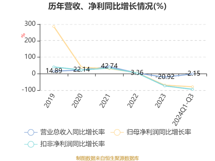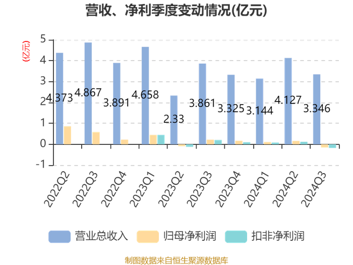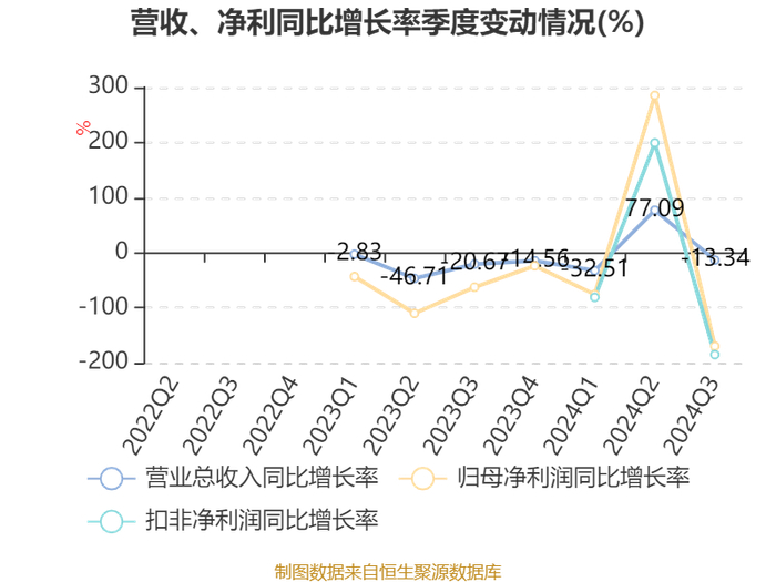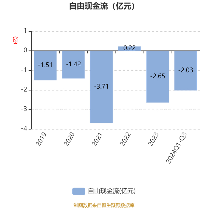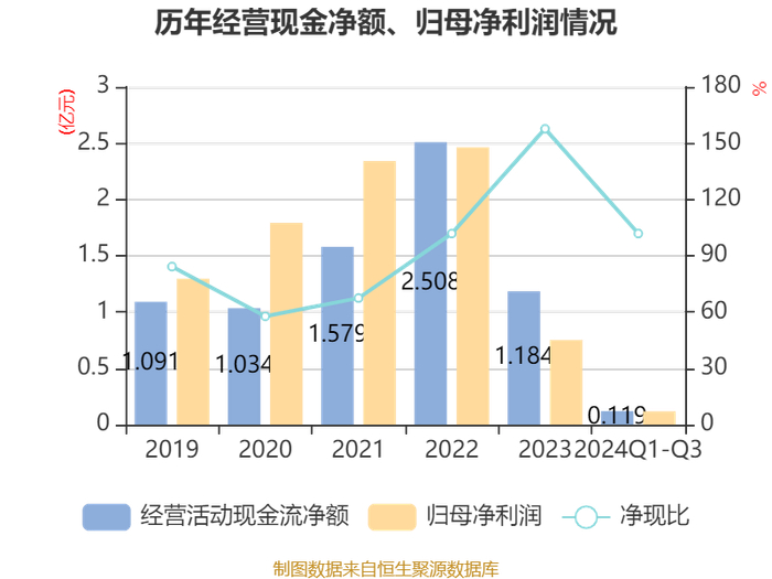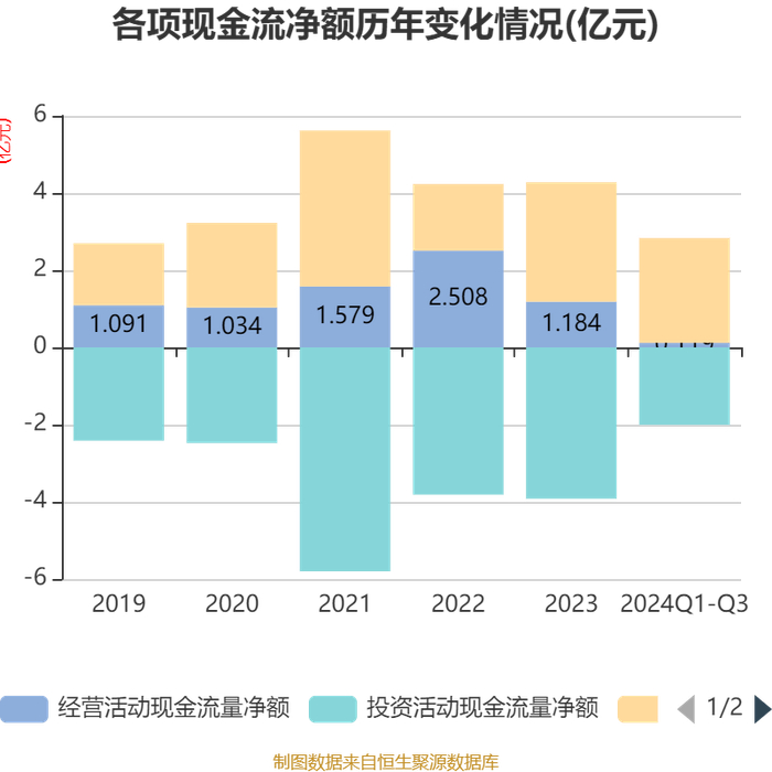 2024年前三季度,公司经营活动现金流净额为1194.95万元,同比下降77.24%;筹资活动现金流净额2.71亿元,同比增加3317.3万元;投资活动现金流净额-2.01亿元,上年同期为-3.15亿元。