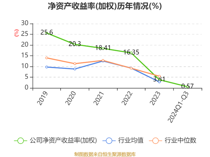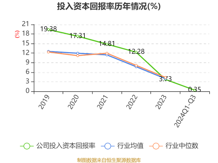 盈利能力方面, 2024年前三季度公司加权平均净资产收益率为0.57%,同比下降2.44个百分点。公司2024年前三季度投入资本回报率为0.35%,较上年同期下降2.61个百分点。