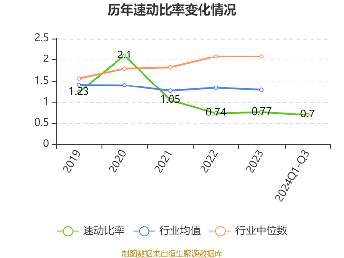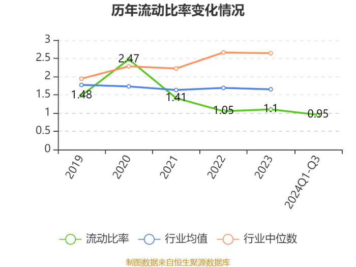 2024年前三季度,公司流动比率为0.95,速动比率为0.7。