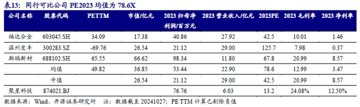 · 聚星科技同行可比公司PE2023均值为78.6X