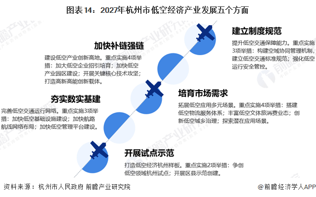 2024年8月,杭州市人民政府发布《杭州市低空经济高质量发展实施方案(2024—2027年)》,《方案》主要从5个方面16项举措推动我市低空经济高质量发展,分别是加快补链强链、夯实数实基建、建立制度规范、培育市场需求以及开展试点示范,方案有效期为3年。