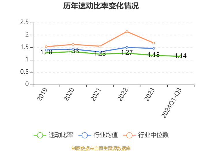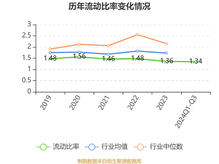 2024年前三季度,公司流动比率为1.34,速动比率为1.14。