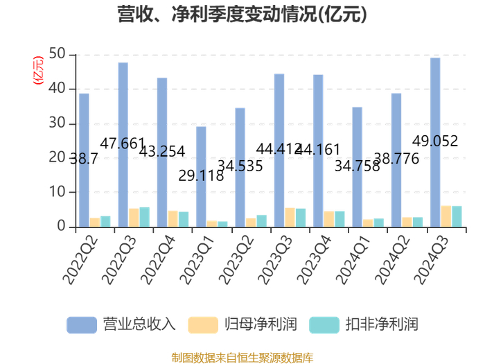 三季报显示,2024年三季度末的公司十大流通股东中,新进股东为中证500交易型开放式指数证券投资基金,取代了二季度末的易方达基金。在具体持股比例上,基本养老保险基金二一零八组合持股有所上升,香港中央结算有限公司、兴全合泰混合型证券投资基金持股有所下降。