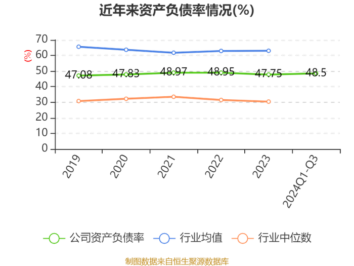 负债重大变化方面,截至2024年三季度末,公司一年内到期的非流动负债较上年末增加49.43%,占公司总资产比重上升0.76个百分点;长期借款较上年末减少18.06%,占公司总资产比重下降0.66个百分点;其他应付款(含利息和股利)较上年末增加44.51%,占公司总资产比重上升0.48个百分点;短期借款较上年末增加1.09%,占公司总资产比重下降0.23个百分点。