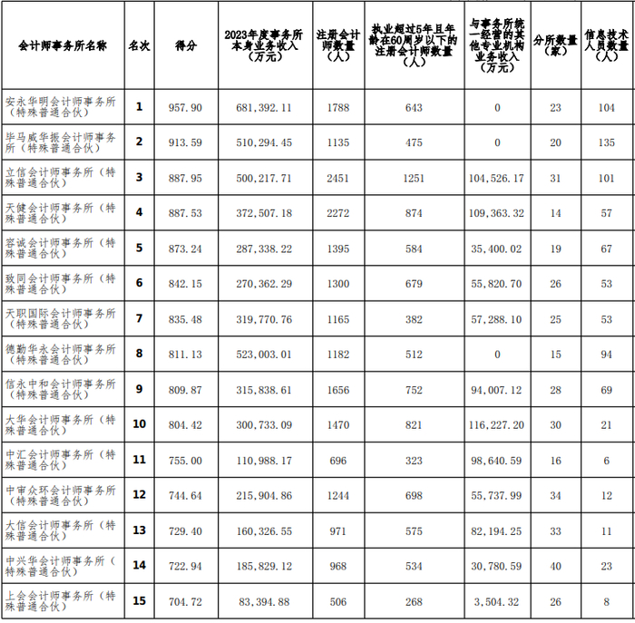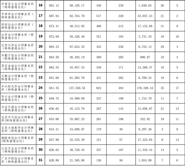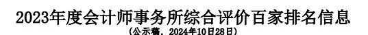 中注协公示2023年度会计师事务所综合评价排名