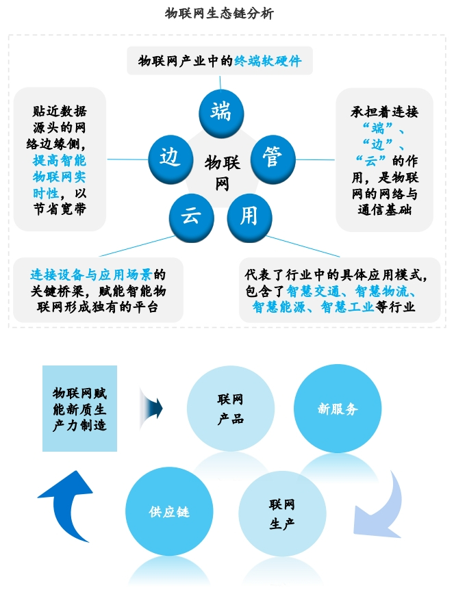 物联网是新质生产力制造的基石,物联网指通过各种形态的传感器实时采集各类信息,在终端、边缘端或云端通过云计算、大数据等技术对数据进行分析,实现设备联网,形成互联设备的集合网络,赋能行业多元化发展。