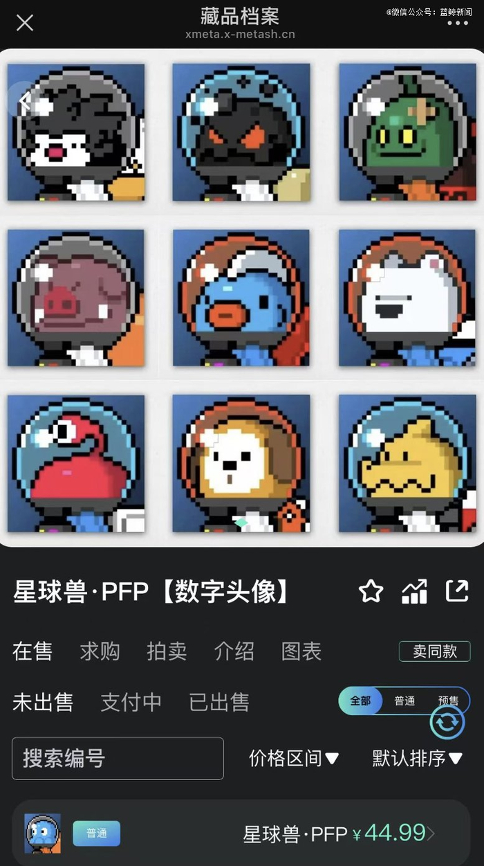 蓝鲸新闻记者发现,目前网上甚至衍生出星球兽数字头像的交易群,不同版本的头像价格也不同,例如生肖、茅台、奥特曼等款式更受欢迎价格更高。