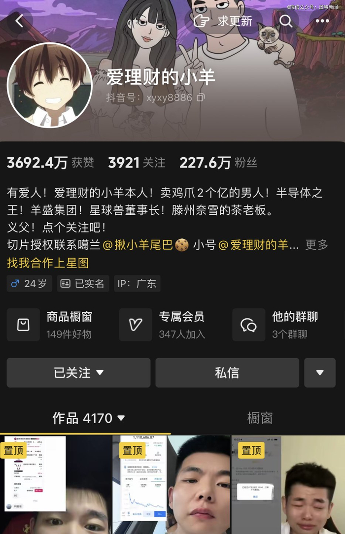 近年来,短视频平台上出现越来越多的财经博主,他们更新的内容大多为炒股盈亏实盘和日常理财的心得经验,“爱理财的小羊”可以说是这一赛道的头部博主。