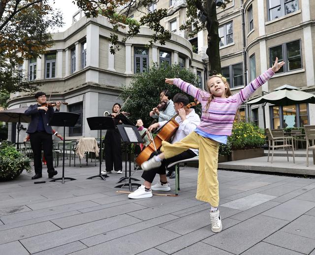 《繁花》之外,四位演奏家又动情奏响“顾嘉辉金曲回声”。《上海滩》《当年情》《万水千山总是情》……这些经由“港乐教父”顾嘉辉作曲的流行歌曲,也勾起了无数人的回忆。一位路过的金发姑娘受现场氛围感染,忍不住跳起舞来,逗得人哈哈笑,连连送上暖心的掌声。