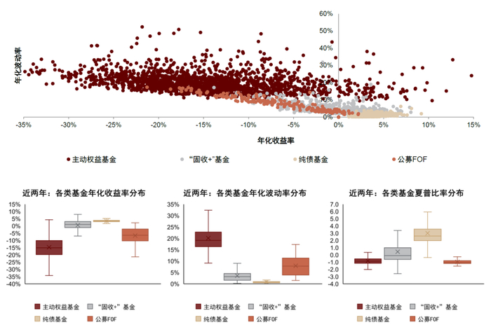 图表5:公募FOF与其他公募产品的风险收益结构对比(近两年)
