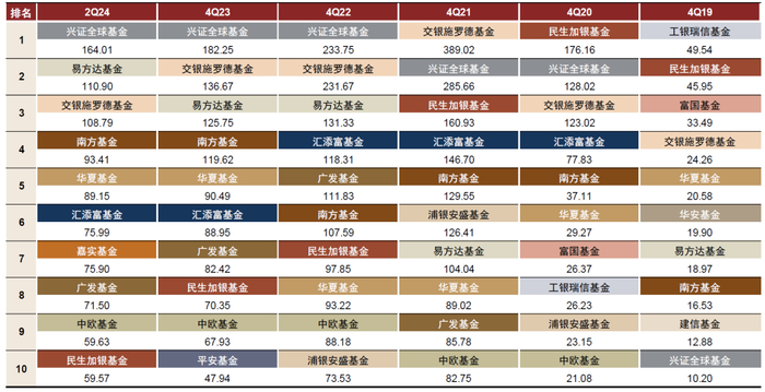 图表8:公募FOF管理规模头部机构近年来排名轮动情况